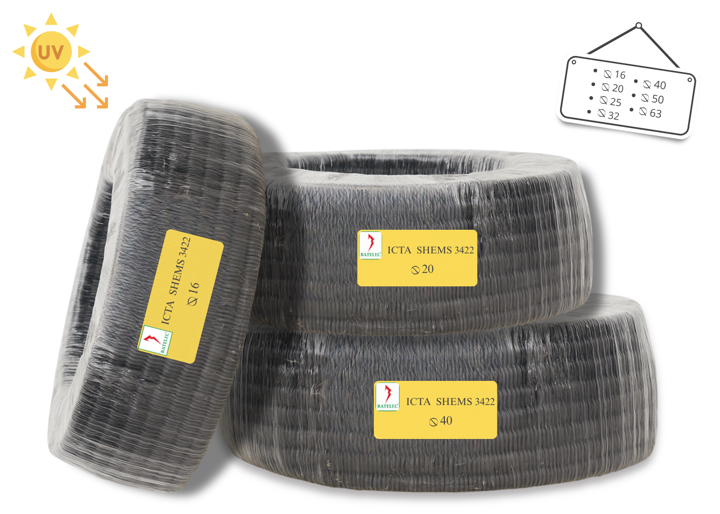 Diamètres ø Disponibles : 16, 20, 25, 32, 40, 50, 63.